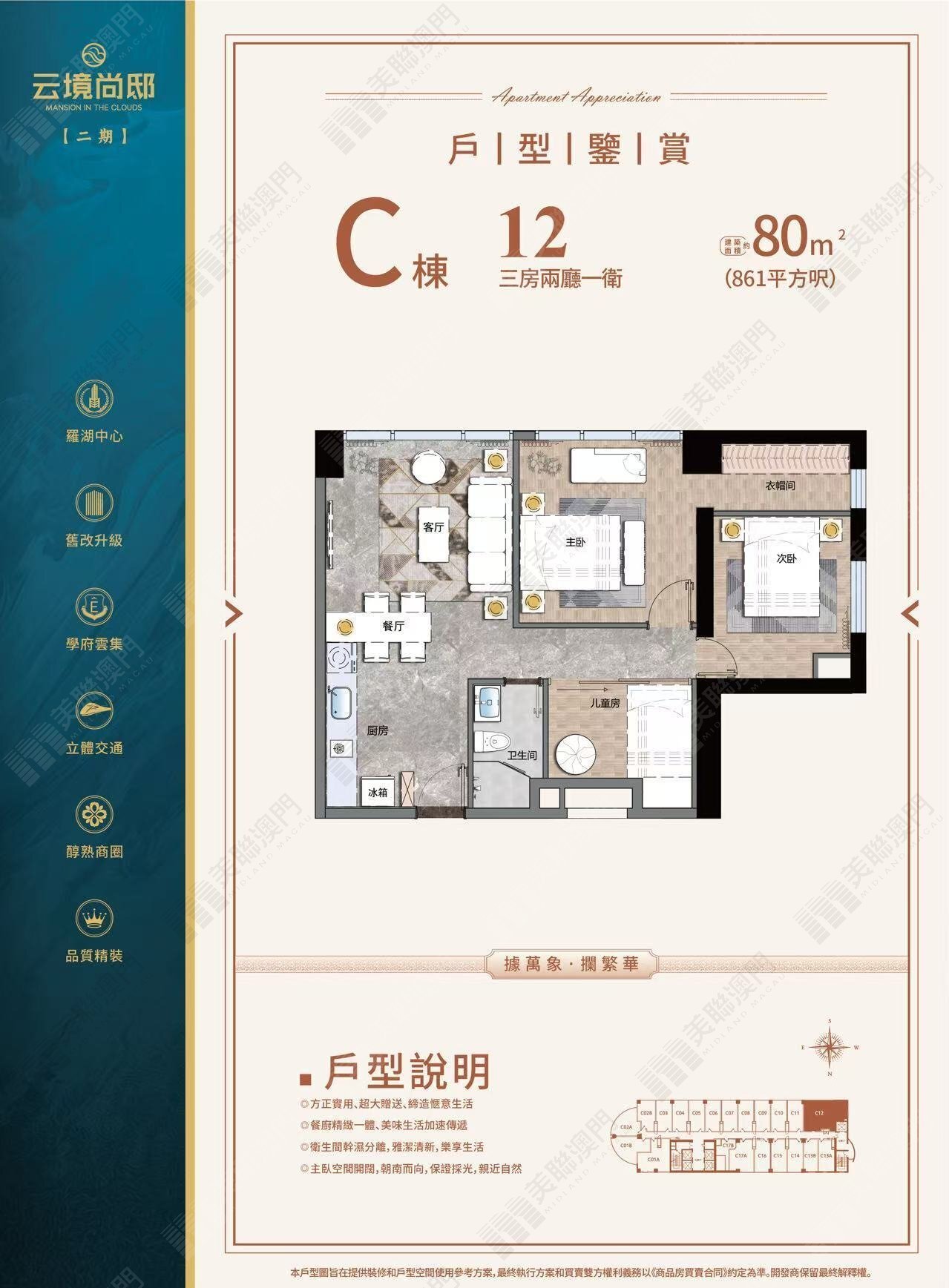 有關樓宇廣告法定資訊及五証資料,請向本司職員查詢。 免責:1、本廣告部分圖片/文字來源於開發商,如有侵權,請聯繫刪除。2、本廣告相關文字/圖片/建築設計效果圖/面積段,是對專案所作的示意表現,僅供參考,最終標準詳見政府相關部門批准檔、圖則;3、本廣告為要約邀請,所有資訊、圖片及數據僅供參考,相關內容不排除政府規劃或開發商未能控制的原因而發生變化,買賣雙方的權利及義務以雙方簽訂的《商品房買賣合同》為準,相關內容如有更新,請以最新資料內容為準。購買境外未建成物業是複雜及有風險的,在作出購買決定前,閣下應仔細閱讀所有相關的資料及文件。如有疑問,請在作出購買決定前尋求獨立專業意見。本廣告/宣傳資料中所展示的照片、圖像、圖畫或草圖僅代表藝術家的印象僅涉及發展。它們並未按比例繪製和/或可能已使用電腦成像技術進行編輯和處理。準買家應參閱售樓說明書以了解發展項目的詳情。賣方亦建議準買家實地考察,以進一步了解發展地盤、週邊環境及附近的公共設施。以上圖則/資料只供參考用途,美聯不保證以上圖則/資料的完整性或準確性。美聯亦不就任何人仕因使用或依賴以上圖則/資料所引致之任何損失或損害負上任何責任。